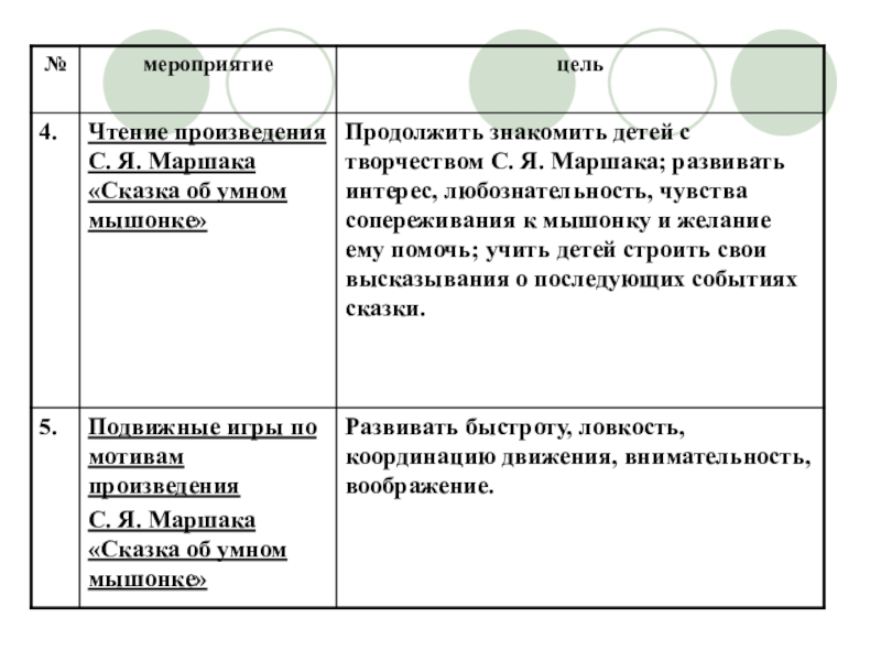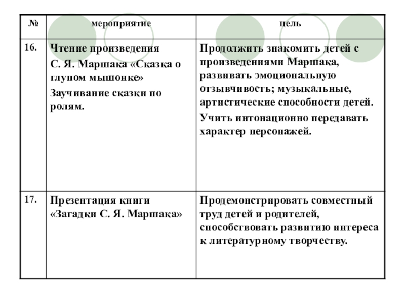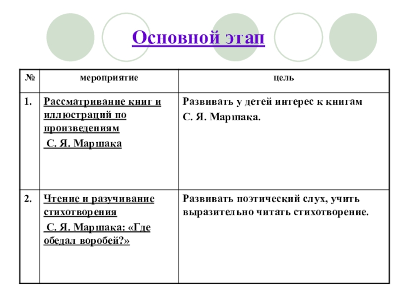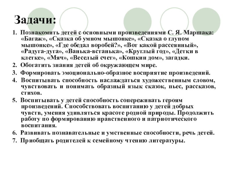 1. Познакомить детей с основными произведениями С. Я. Маршака: «Багаж», «Сказка