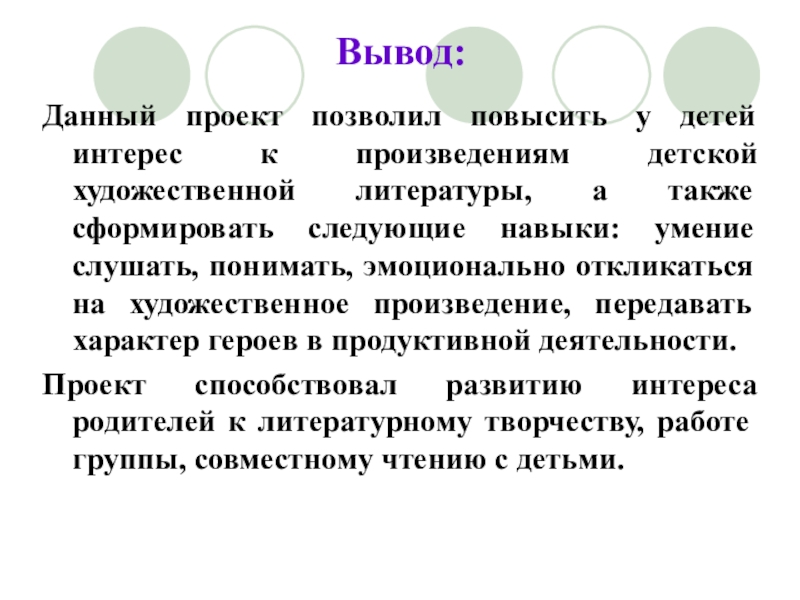 Данный проект позволил повысить у детей интерес к произведениям детской художественной