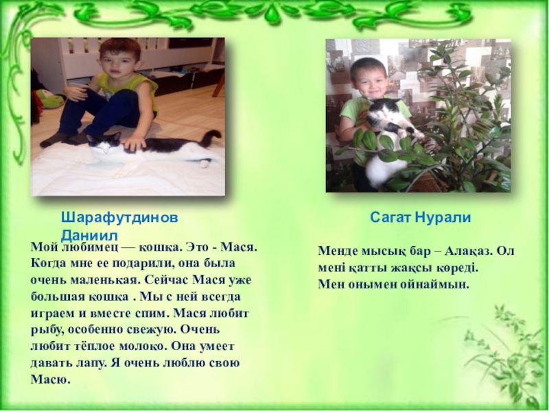Менде мысық бар – Алақаз. Ол мені қатты жақсы көреді.