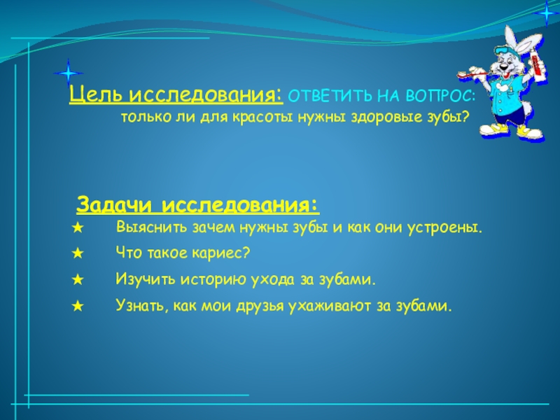 Выяснить зачем нужны зубы и как они устроены.