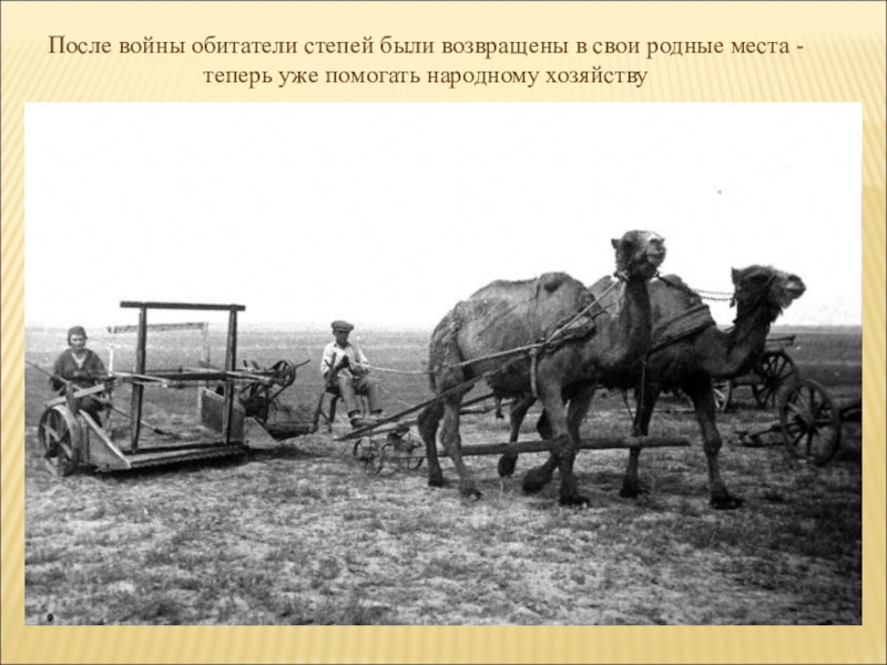 Слайд 13После войны обитатели степей были возвращены в свои родные места -