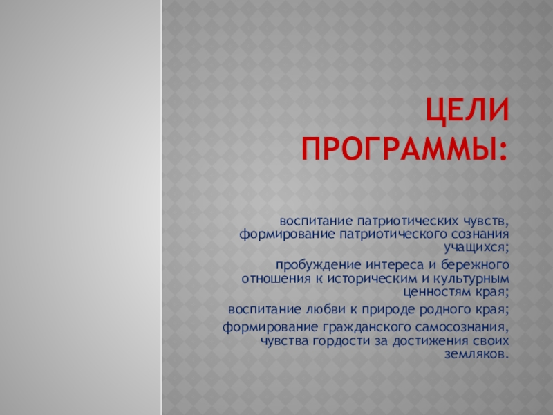 - Государственная программа “Патриотическое воспитание граждан Российской Федерации на 2011-2015 годы”;