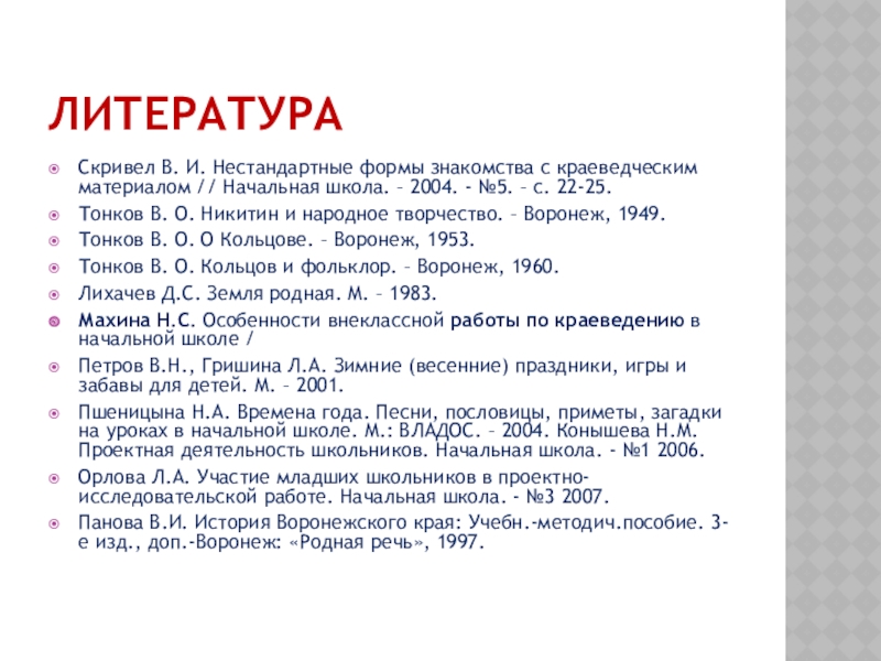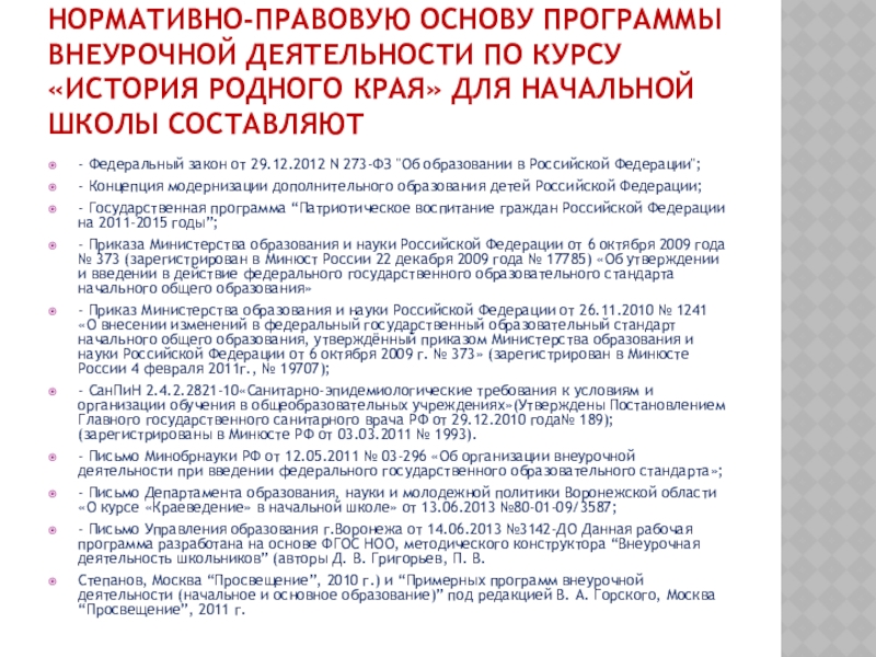 - Письмо Департамента образования, науки и молодежной политики Воронежской области «О курсе «Краеведение» в начальной школе» от 13.06.2013 №80-01-09/3587;