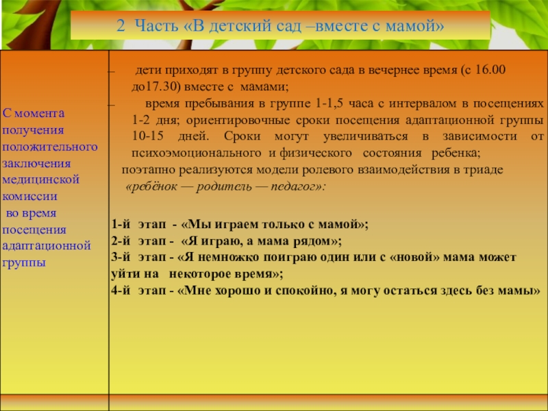договариваются о единых подходах к его воспитанию, составляют план индивидуального сопровождения каждого малыша как на этапе поступления в дошкольное учреждение, так и на весь период его пребывания в нем.