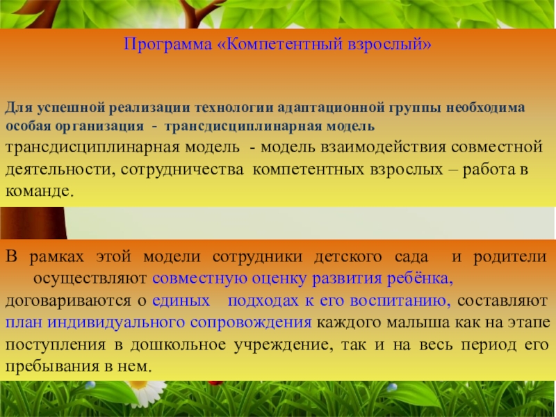 В рамках этой модели сотрудники детского сада и родители осуществляют совместную оценку развития ребёнка,