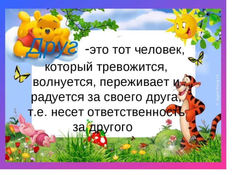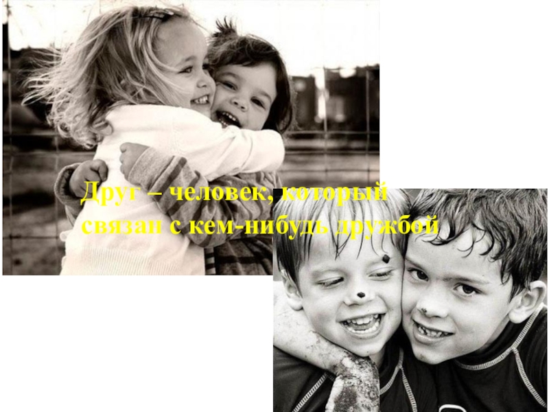 Слайд 4Друг – человек, который связан с кем-нибудь дружбой