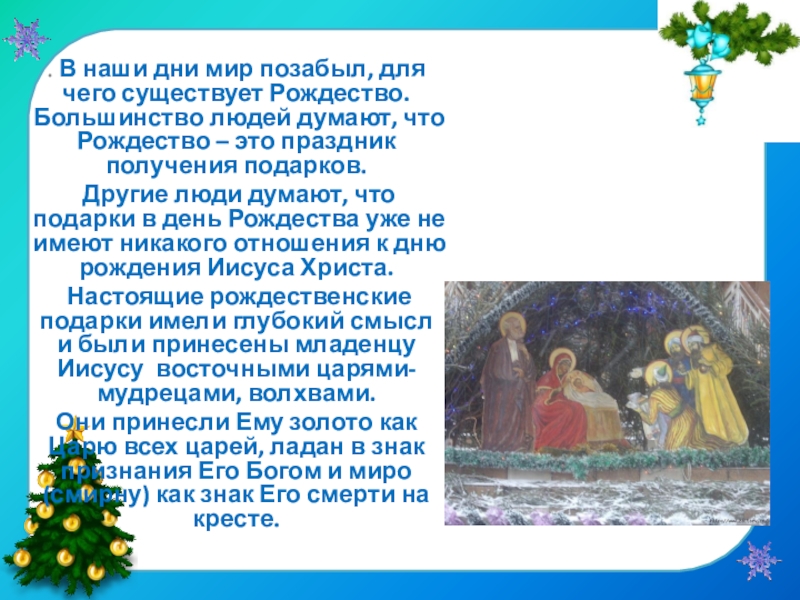 Слайд 8. В наши дни мир позабыл, для чего существует Рождество. Большинство
