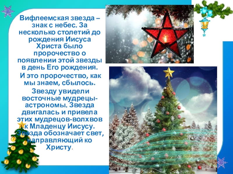 Слайд 14Вифлеемская звезда – знак с небес. За несколько столетий до рождения