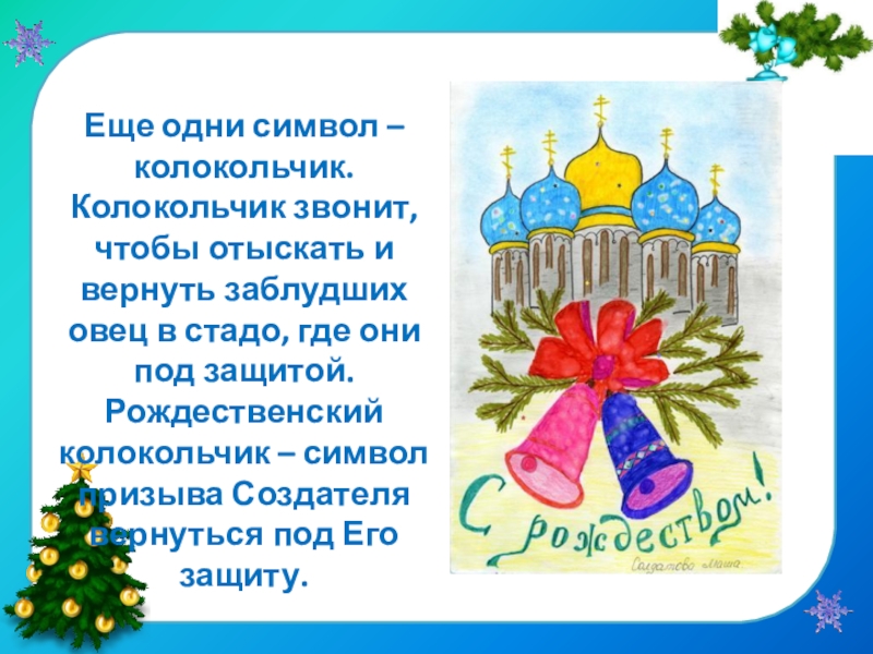 заблудших овец в стадо, где они под защитой. Рождественский колокольчик – символ призыва Создателя вернуться под Его защиту.