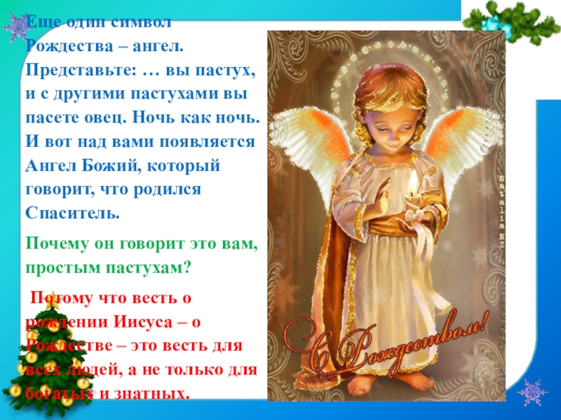 Слайд 15Еще один символ Рождества – ангел. Представьте: … вы пастух, и