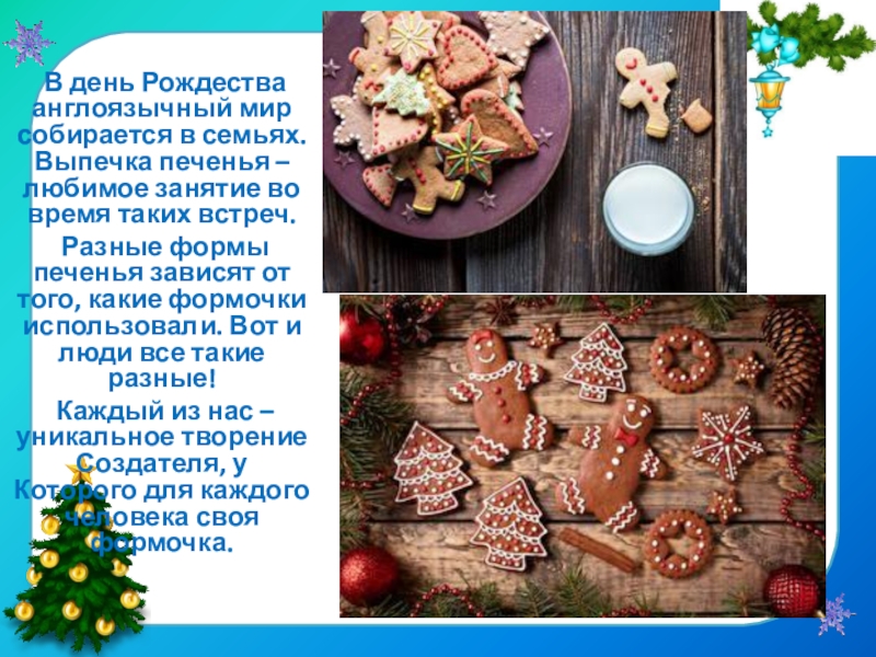 Слайд 11 В день Рождества англоязычный мир собирается в семьях. Выпечка печенья