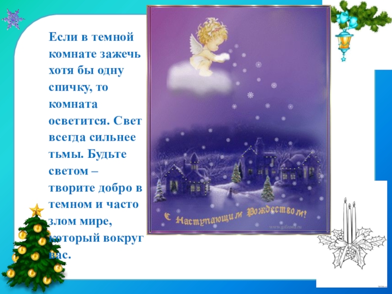 ставили в домах, где праздновали Рождество. Уже тогда Иисуса Христа называли Светом миру, потому что Он показал выход из духовной тьмы.