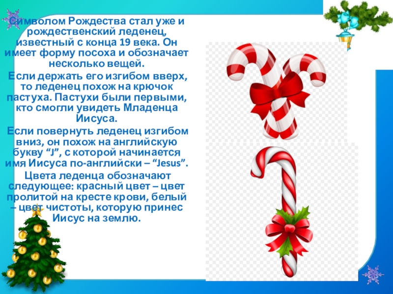 Слайд 10Символом Рождества стал уже и рождественский леденец, известный с конца 19