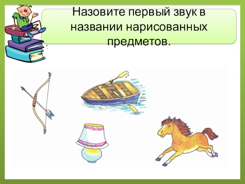 Слайд 14Назовите первый звук в названии нарисованных предметов.