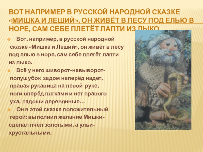 3. Прочитать сказки разных народов, в которых действует Леший.
