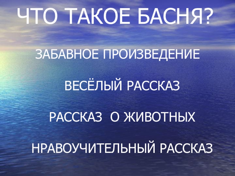 ЧТО ТАКОЕ БАСНЯ?  ЗАБАВНОЕ ПРОИЗВЕДЕНИЕ  ВЕСЁЛЫЙ РАССКАЗ  РАССКАЗ О ЖИВОТНЫХ