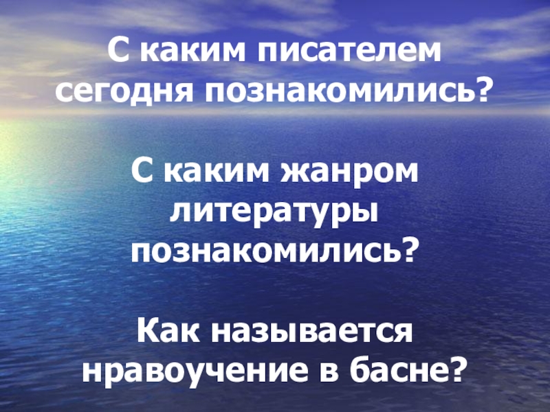 С каким писателем сегодня познакомились?  С каким жанром литературы познакомились?   Как называется нравоучение в