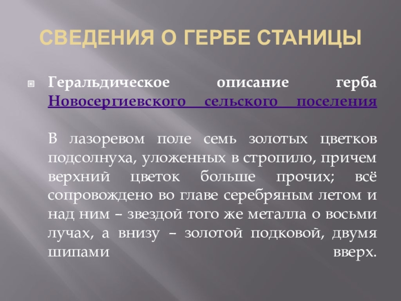 Слайд 12СВЕДЕНИЯ О ГЕРБЕ СТАНИЦЫ