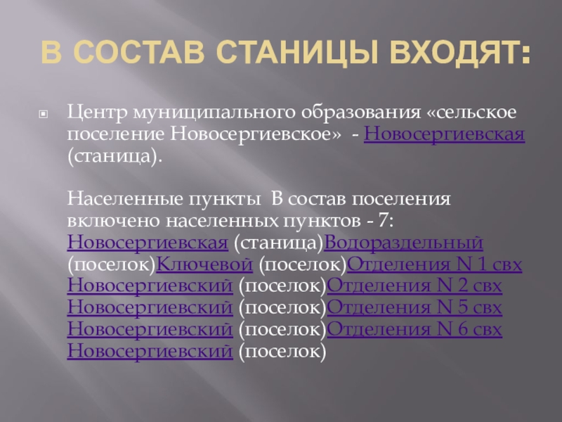 Слайд 16В СОСТАВ СТАНИЦЫ ВХОДЯТ: