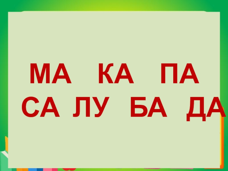 Слайд 4МА КА ПА СА ЛУ БА ДА