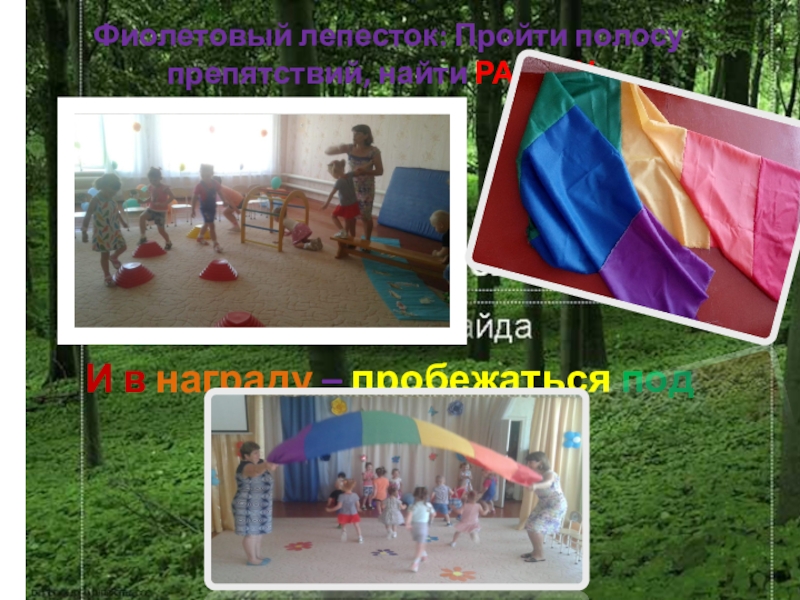 Фиолетовый лепесток: Пройти полосу препятствий, найти РАДУГУ»И в награду – пробежаться под Радугой