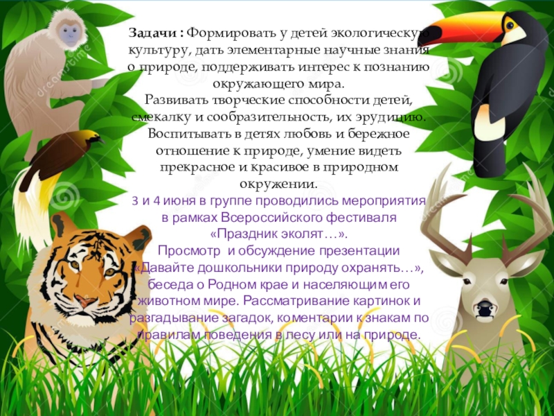 Слайд 64 июня в группе прошло развлечение «Береги природу» .