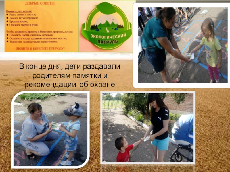 Слайд 5В конце дня, дети раздавали родителям памятки и рекомендации об охране