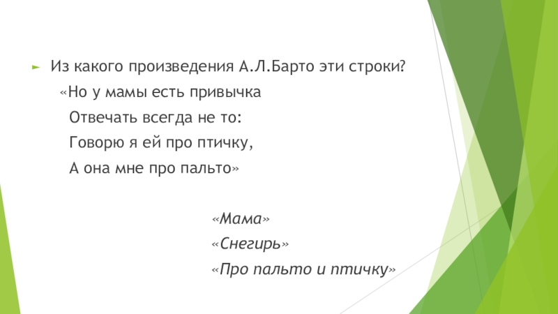 Слайд 22Из какого произведения А.Л.Барто эти строки?