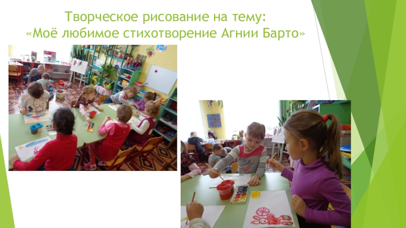 Слайд 28Творческое рисование на тему: «Моё любимое стихотворение Агнии Барто»