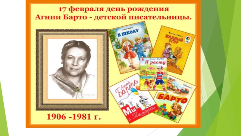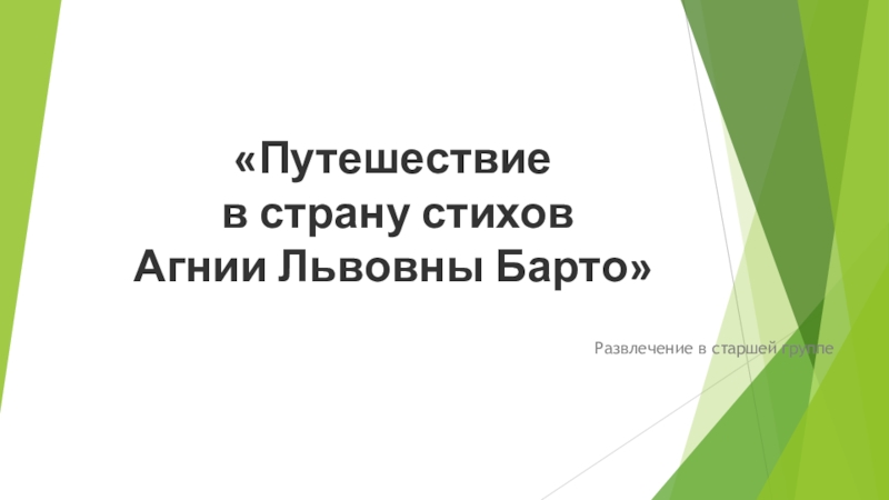 Презентация, доклад к развлечению в старшей группе по теме Путешествие в страну стихов Агнии Львовны Барто