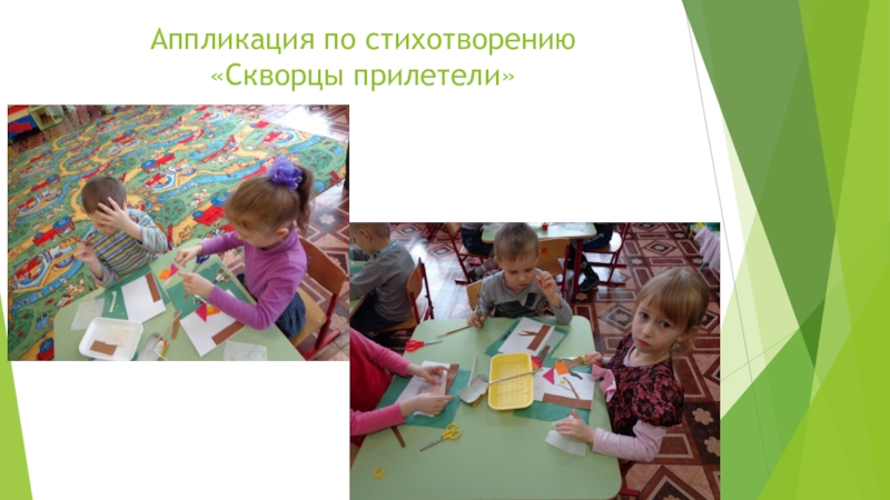 Слайд 27Аппликация по стихотворению «Скворцы прилетели»