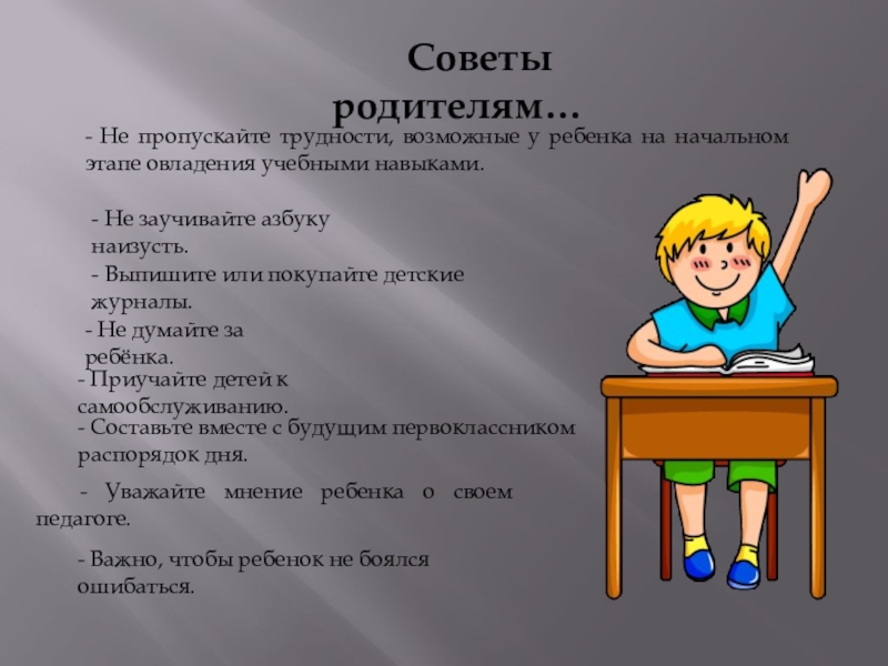 - Составьте вместе с будущим первоклассником распорядок дня.
