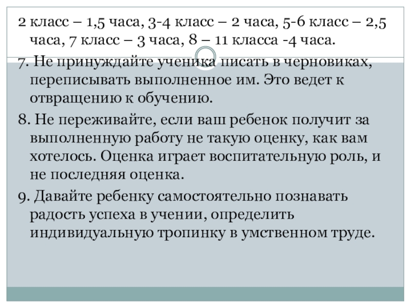 7. Не принуждайте ученика писать в черновиках, переписывать выполненное им. Это ведет к отвращению к обучению.