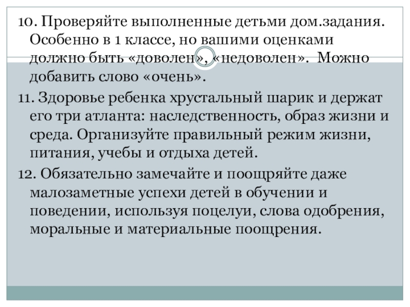 Слайд 1210. Проверяйте выполненные детьми дом.задания. Особенно в 1 классе, но вашими