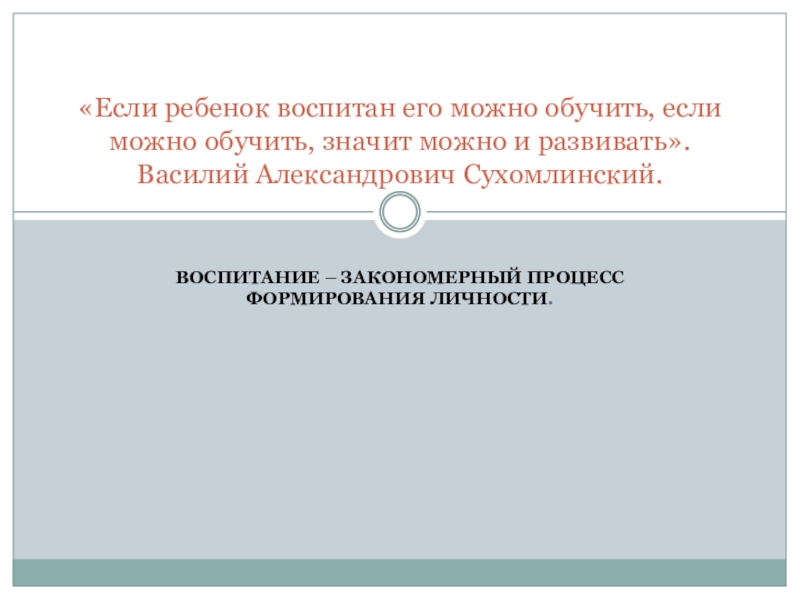 Слайд 1ВОСПИТАНИЕ – ЗАКОНОМЕРНЫЙ ПРОЦЕСС ФОРМИРОВАНИЯ ЛИЧНОСТИ.