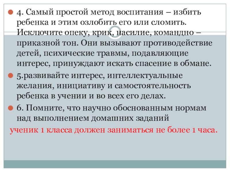 Слайд 104. Самый простой метод воспитания – избить ребенка и этим озлобить