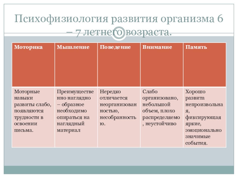 Слайд 3Психофизиология развития организма 6 – 7 летнего возраста.