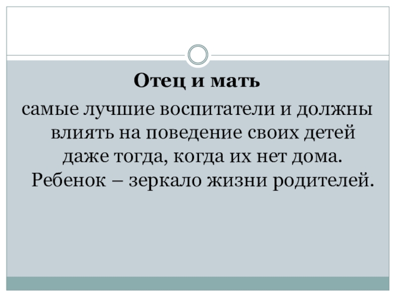 своих детей даже тогда, когда их нет дома. Ребенок – зеркало жизни родителей.