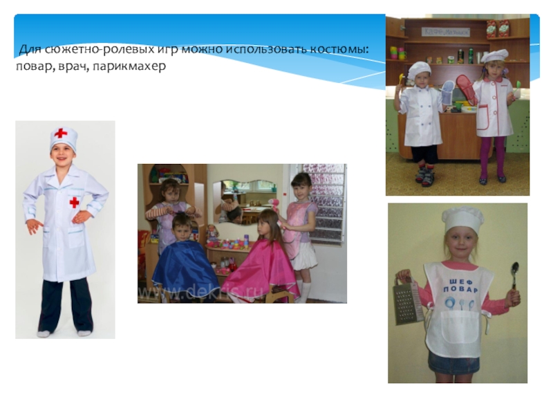 Слайд 20 Для сюжетно-ролевых игр можно использовать костюмы: