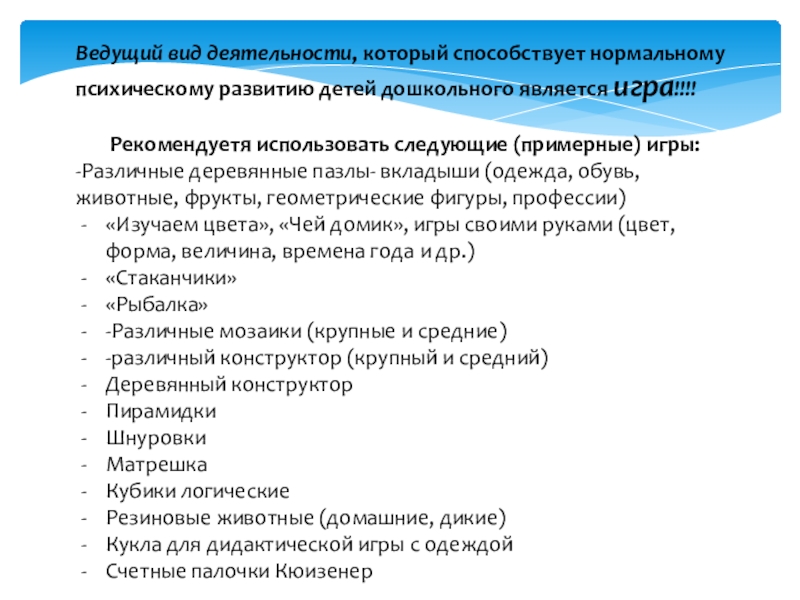 Слайд 15Ведущий вид деятельности, который способствует нормальному психическому развитию детей дошкольного является