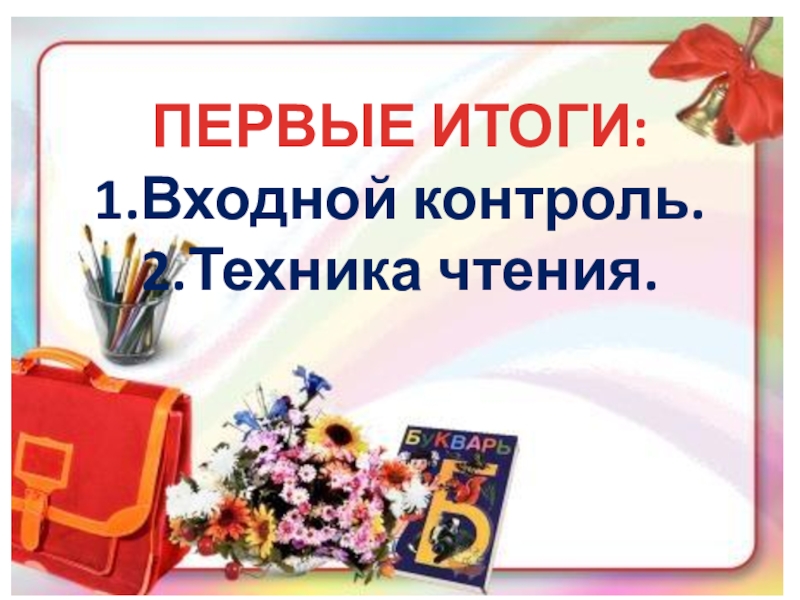 ПЕРВЫЕ ИТОГИ:1.Входной контроль.2.Техника чтения.