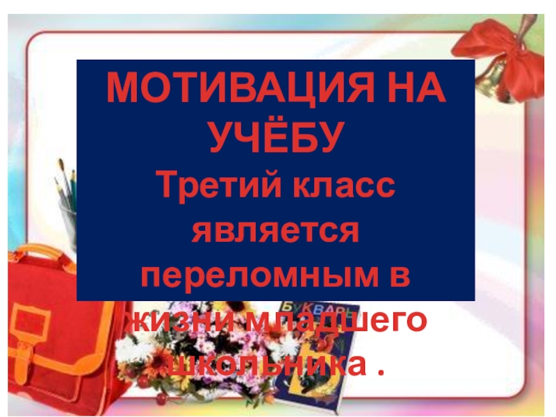 МОТИВАЦИЯ НА УЧЁБУТретий класс является переломным в жизни младшего школьника .