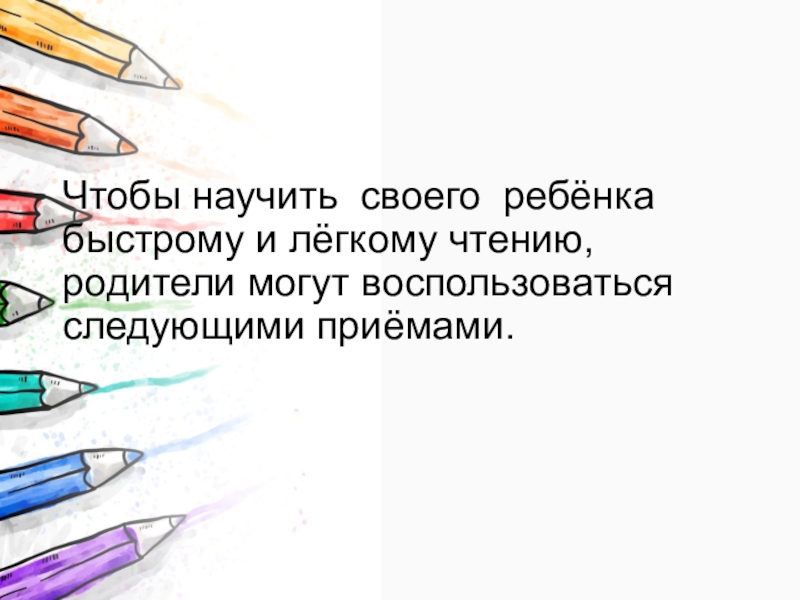 Слайд 2Чтобы научить своего ребёнка быстрому и лёгкому чтению, родители могут воспользоваться