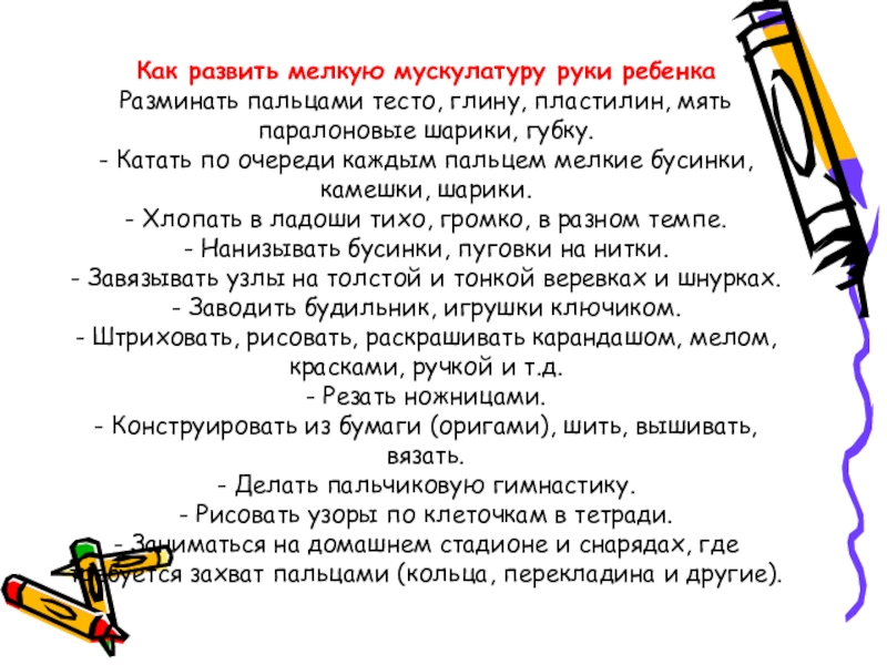Слайд 19Как развить мелкую мускулатуру руки ребенка
