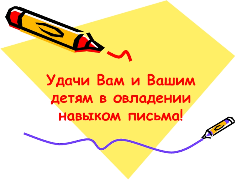 Слайд 21Удачи Вам и Вашим детям в овладении навыком письма!