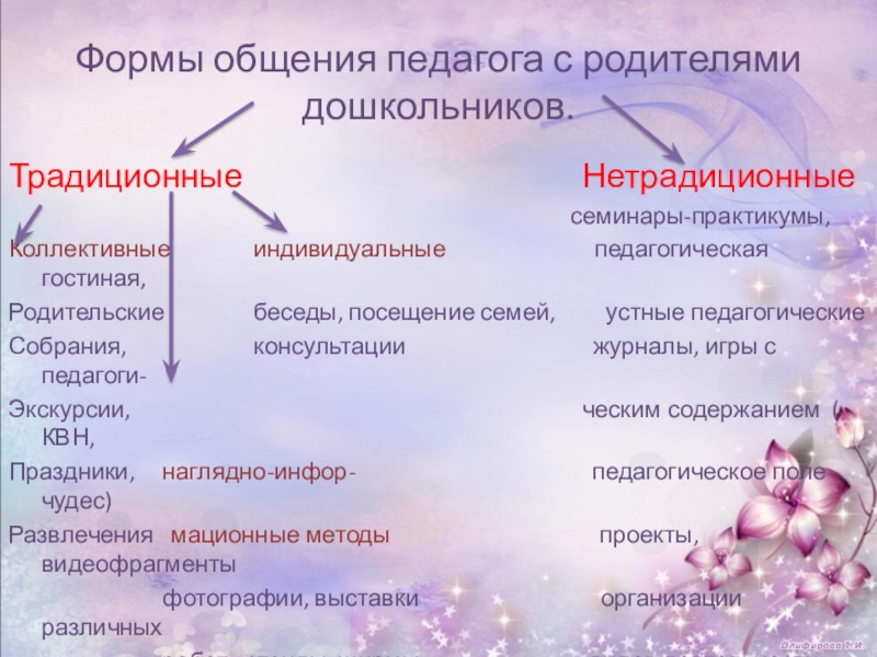 Слайд 7Формы общения педагога с родителями дошкольников.