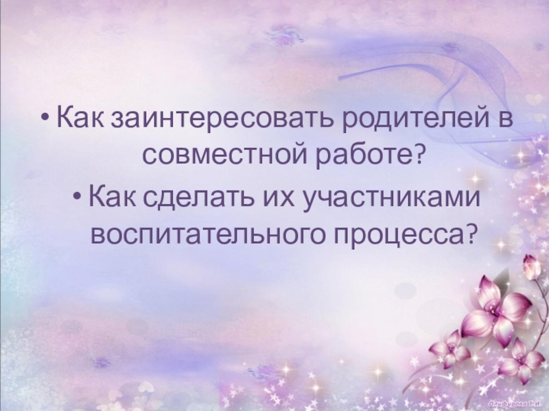 Как заинтересовать родителей в совместной работе?Как сделать их участниками воспитательного процесса?
