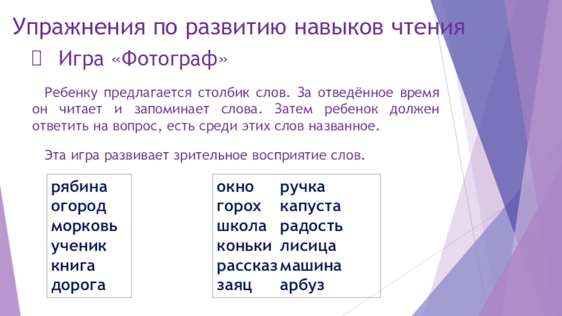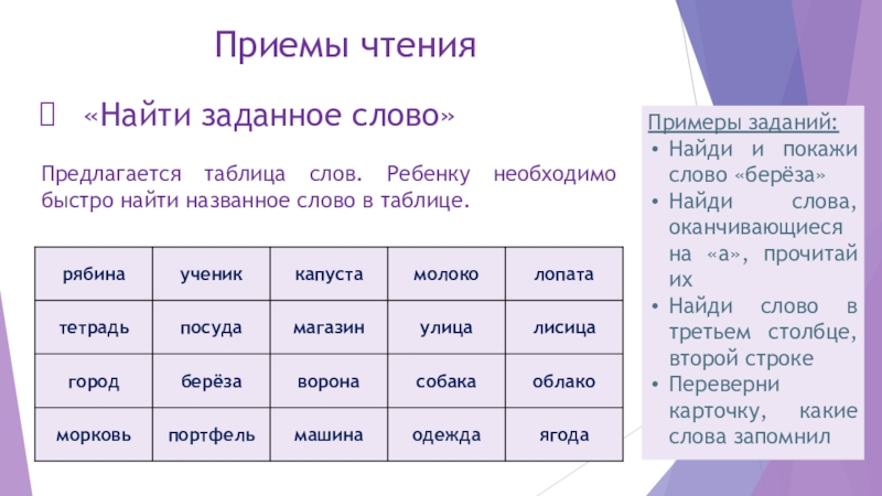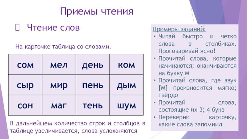 В дальнейшем количество строк и столбцов в таблице увеличивается, слова усложняются