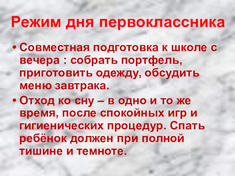 Отход ко сну – в одно и то же время, после спокойных игр и гигиенических процедур. Спать ребёнок должен при полной тишине и темноте.