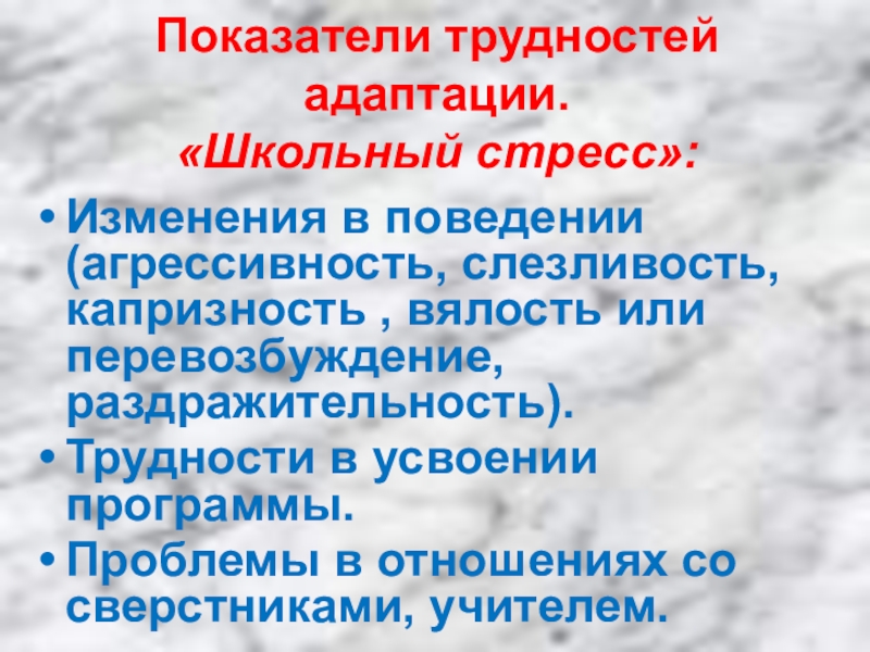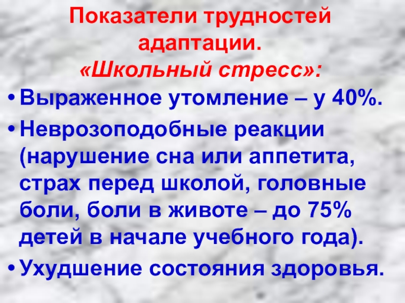 сна или аппетита, страх перед школой, головные боли, боли в животе – до 75% детей в начале учебного года).